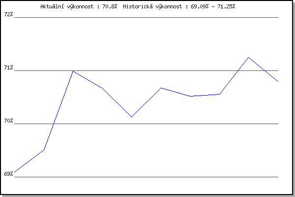 Závod| Body | Výkonnost | Změna | 17.11.2007 | 17.listopadu | 69.09% | 69.09% | | 15.3.2008 | Myslivna | 69.69% | 69.51% | +0.42% | 29.3.2008 | Cernohorsky soudek | 72.36% | 70.99% | +1.48% | 26.12.2008 | Syrovice | 70.05% | 70.67% | -0.32% | 21.3.2009 | Myslivna | 67.81% | 70.13% | -0.54% | 4.4.2009 | Cernohorsky soudek | 71.76% | 70.68% | +0.55% | 26.12.2009 | Syrovice | 70.03% | 70.52% | -0.16% | 21.3.2010 | Myslivna | 70.66% | 70.56% | +0.04% | 3.4.2010 | Cernohorsky soudek | 72.91% | 71.25% | +0.69% | 26.12.2010 | Syrovice | 66.90% | 70.80% | -0.45% | | |