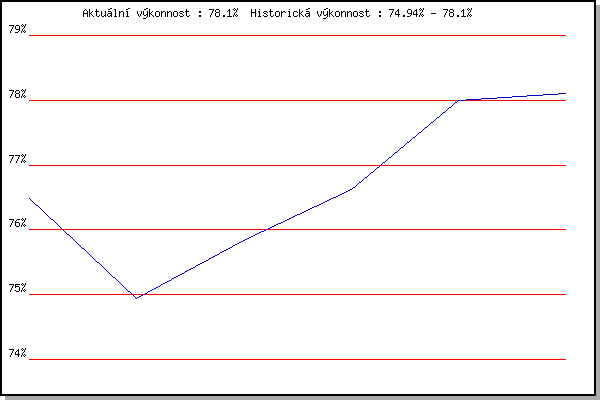 Závod| Body | Výkonnost | Změna | 30.11.2013 | Okrouhla | 76.48% | 76.48% | | 8.2.2014 | Rajecko | 72.98% | 74.94% | -1.54% | 17.11.2015 | Jehnice | 76.70% | 75.84% | +0.90% | 19.3.2016 | Myslivna | 77.68% | 76.62% | +0.78% | 3.4.2016 | Brnenska prehrada | 80.23% | 77.99% | +1.37% | 17.11.2017 | Jehnice | 78.31% | 78.10% | +0.11% | | |