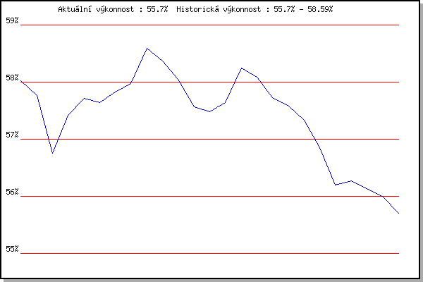 ZávodBodyVýkonnostZměna| 17.11.2014 | Jehnice | 58.02% | 58.02% | | | 26.12.2014 | Syrovice | 57.46% | 57.77% | -0.25% | | 3.1.2015 | Kurim | 53.96% | 56.75% | -1.02% | | 7.3.2015 | Modrice | 58.33% | 57.42% | +0.67% | | 14.3.2015 | Myslivna | 58.19% | 57.71% | +0.29% | | 29.3.2015 | Brnenska prehrada | 57.47% | 57.64% | -0.07% | | 5.12.2015 | Okrouhla | 58.24% | 57.83% | +0.19% | | 12.12.2015 | Vranovsky zleb | 58.30% | 57.97% | +0.14% | | 26.12.2015 | Syrovice | 60.08% | 58.59% | +0.62% | | 9.1.2016 | Kurim | 57.58% | 58.37% | -0.22% | | 12.3.2016 | Modrice | 54.01% | 58.05% | -0.32% | | 19.3.2016 | Myslivna | 55.75% | 57.57% | -0.48% | | 3.12.2016 | Okrouhla | 57.15% | 57.48% | -0.09% | | 10.12.2016 | Vranovsky zleb | 58.08% | 57.64% | +0.16% | | 26.12.2016 | Syrovice | 59.95% | 58.25% | +0.61% | | 21.1.2017 | Radostice | 57.44% | 58.09% | -0.16% | | 11.2.2017 | Rajecko | 56.33% | 57.73% | -0.36% | | 4.3.2017 | Modrice | 56.98% | 57.58% | -0.15% | | 17.11.2017 | Jehnice | 52.79% | 57.33% | -0.25% | | 26.12.2017 | Syrovice | 54.91% | 56.85% | -0.48% | | 27.1.2018 | Rajecko | 53.51% | 56.20% | -0.65% | | 17.2.2018 | Modrice | 56.49% | 56.27% | +0.07% | | 10.3.2018 | Myslivna | 55.65% | 56.14% | -0.13% | | 25.3.2018 | Brnenska prehrada | 55.42% | 56.00% | -0.14% | | 17.11.2018 | Jehnice | 52.63% | 55.70% | -0.30% | | | | |