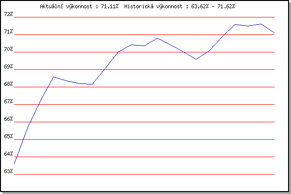 ZávodBodyVýkonnostZměna| 5.12.2015 | Okrouhla | 63.61% | 63.62% | | | 26.12.2015 | Syrovice | 66.49% | 65.63% | +2.01% | | 9.1.2016 | Kurim | 68.69% | 67.21% | +1.58% | | 23.1.2016 | Radostice | 70.40% | 68.58% | +1.37% | | 6.2.2016 | Rajecko | 67.80% | 68.35% | -0.23% | | 19.3.2016 | Myslivna | 67.76% | 68.19% | -0.16% | | 3.4.2016 | Brnenska prehrada | 68.11% | 68.17% | -0.02% | | 17.11.2016 | Jehnice | 71.19% | 69.09% | +0.92% | | 3.12.2016 | Okrouhla | 72.14% | 69.99% | +0.90% | | 10.12.2016 | Vranovsky zleb | 71.47% | 70.41% | +0.42% | | 26.12.2016 | Syrovice | 70.14% | 70.35% | -0.06% | | 7.1.2017 | Kurim | 72.01% | 70.80% | +0.45% | | 11.2.2017 | Rajecko | 68.63% | 70.41% | -0.39% | | 4.3.2017 | Modrice | 67.86% | 70.04% | -0.37% | | 2.4.2017 | Brnenska prehrada | 65.17% | 69.57% | -0.47% | | 17.11.2017 | Jehnice | 71.51% | 70.08% | +0.51% | | 2.12.2017 | Okrouhla | 73.21% | 70.89% | +0.81% | | 9.12.2017 | Vranovsky zleb | 73.57% | 71.58% | +0.69% | | 26.12.2017 | Syrovice | 71.18% | 71.50% | -0.08% | | 6.1.2018 | Kurim | 71.99% | 71.62% | +0.12% | | 25.3.2018 | Brnenska prehrada | 66.61% | 71.11% | -0.51% | | | | |