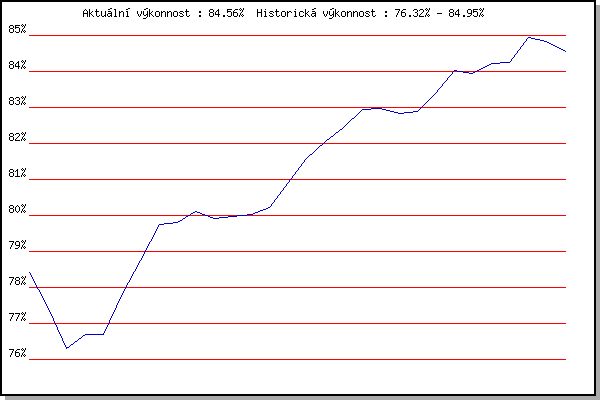 ZávodBodyVýkonnostZměna| 17.11.2016 | Jehnice | 78.41% | 78.41% | | | 3.12.2016 | Okrouhla | 76.14% | 77.41% | -1.00% | | 7.1.2017 | Kurim | 73.91% | 76.32% | -1.09% | | 21.1.2017 | Radostice | 77.26% | 76.71% | +0.39% | | 11.2.2017 | Rajecko | 76.71% | 76.71% | 0.00% | | 4.3.2017 | Modrice | 79.99% | 77.84% | +1.13% | | 25.3.2017 | Myslivna | 80.71% | 78.76% | +0.92% | | 17.11.2017 | Jehnice | 82.02% | 79.75% | +0.99% | | 2.12.2017 | Okrouhla | 79.95% | 79.81% | +0.06% | | 9.12.2017 | Vranovsky zleb | 80.85% | 80.10% | +0.29% | | 6.1.2018 | Kurim | 79.27% | 79.92% | -0.18% | | 20.1.2018 | Radostice | 80.09% | 79.96% | +0.04% | | 17.2.2018 | Modrice | 80.18% | 80.02% | +0.06% | | 10.3.2018 | Myslivna | 80.84% | 80.23% | +0.21% | | 17.11.2018 | Jehnice | 82.89% | 80.93% | +0.70% | | 1.12.2018 | Okrouhla | 83.42% | 81.57% | +0.64% | | 15.12.2018 | Vranovsky zleb | 83.43% | 82.05% | +0.48% | | 5.1.2019 | Kurim | 83.51% | 82.43% | +0.38% | | 19.1.2019 | Radostice | 84.46% | 82.95% | +0.52% | | 26.1.2019 | Rajecko | 82.98% | 82.96% | +0.01% | | 9.3.2019 | Modrice | 82.34% | 82.83% | -0.13% | | 16.3.2019 | Myslivna | 83.05% | 82.89% | +0.06% | | 7.4.2019 | Brnenska prehrada | 84.83% | 83.38% | +0.49% | | 17.11.2019 | Jehnice | 85.93% | 84.03% | +0.65% | | 30.11.2019 | Okrouhla | 83.59% | 83.94% | -0.09% | | 14.12.2019 | Vranovsky zleb | 85.08% | 84.23% | +0.29% | | 4.1.2020 | Kurim | 84.35% | 84.26% | +0.03% | | 18.1.2020 | Radostice | 86.98% | 84.95% | +0.69% | | 25.1.2020 | Rajecko | 84.30% | 84.82% | -0.13% | | 7.3.2020 | Modrice | 83.47% | 84.56% | -0.26% | | | | |