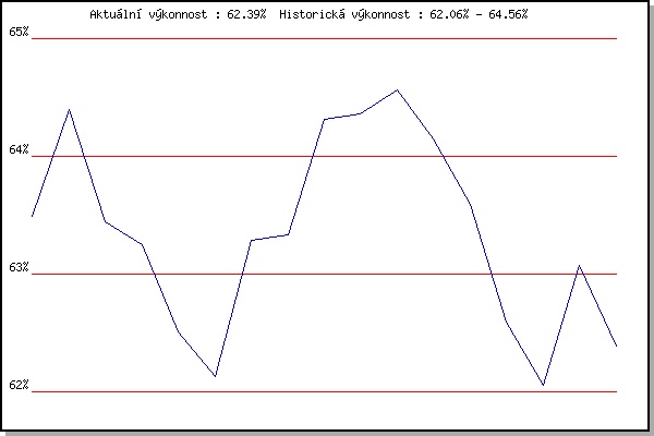 ZávodBodyVýkonnostZměna| 4.3.2017 | Modrice | 63.49% | 63.49% | | | 2.4.2017 | Brnenska prehrada | 64.79% | 64.40% | +0.91% | | 2.12.2017 | Okrouhla | 61.17% | 63.44% | -0.96% | | 9.12.2017 | Vranovsky zleb | 62.86% | 63.25% | -0.19% | | 26.12.2017 | Syrovice | 59.25% | 62.51% | -0.74% | | 6.1.2018 | Kurim | 61.07% | 62.13% | -0.38% | | 20.1.2018 | Radostice | 65.71% | 63.29% | +1.16% | | 27.1.2018 | Rajecko | 63.43% | 63.33% | +0.04% | | 17.2.2018 | Modrice | 66.65% | 64.31% | +0.98% | | 10.3.2018 | Myslivna | 64.47% | 64.36% | +0.05% | | 25.3.2018 | Brnenska prehrada | 65.09% | 64.56% | +0.20% | | 1.12.2018 | Okrouhla | 61.68% | 64.15% | -0.41% | | 15.12.2018 | Vranovsky zleb | 58.62% | 63.59% | -0.56% | | 5.1.2019 | Kurim | 58.60% | 62.59% | -1.00% | | 19.1.2019 | Radostice | 60.03% | 62.06% | -0.53% | | 9.3.2019 | Modrice | 65.90% | 63.07% | +1.01% | | 16.3.2019 | Myslivna | 59.68% | 62.39% | -0.68% | | | | |