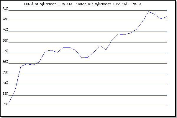 ZávodBodyVýkonnostZměna| 1.12.2007 | Jehnice | 62.30% | 62.31% | | | 26.12.2007 | Syrovice | 63.90% | 63.42% | +1.11% | | 15.3.2014 | Myslivna | 67.82% | 65.71% | +2.29% | | 17.11.2014 | Jehnice | 66.34% | 65.98% | +0.27% | | 13.12.2014 | Vranovsky zleb | 65.58% | 65.86% | -0.12% | | 26.12.2014 | Syrovice | 66.68% | 66.14% | +0.28% | | 3.1.2015 | Kurim | 69.31% | 67.16% | +1.02% | | 17.1.2015 | Radostice | 67.50% | 67.26% | +0.10% | | 7.3.2015 | Modrice | 66.36% | 67.05% | -0.21% | | 14.3.2015 | Myslivna | 68.75% | 67.54% | +0.49% | | 29.3.2015 | Brnenska prehrada | 67.53% | 67.54% | 0.00% | | 26.12.2015 | Syrovice | 63.98% | 67.25% | -0.29% | | 19.3.2016 | Myslivna | 63.01% | 66.56% | -0.69% | | 3.12.2016 | Okrouhla | 66.62% | 66.57% | +0.01% | | 10.12.2016 | Vranovsky zleb | 68.55% | 67.09% | +0.52% | | 26.12.2016 | Syrovice | 69.39% | 67.69% | +0.60% | | 4.3.2017 | Modrice | 65.81% | 67.31% | -0.38% | | 2.4.2017 | Brnenska prehrada | 70.73% | 68.20% | +0.89% | | 9.12.2017 | Vranovsky zleb | 70.42% | 68.77% | +0.57% | | 26.12.2017 | Syrovice | 68.56% | 68.72% | -0.05% | | 6.1.2018 | Kurim | 69.28% | 68.86% | +0.14% | | 17.2.2018 | Modrice | 70.31% | 69.23% | +0.37% | | 10.3.2018 | Myslivna | 71.93% | 69.92% | +0.69% | | 25.3.2018 | Brnenska prehrada | 73.76% | 70.90% | +0.98% | | 17.11.2018 | Jehnice | 69.59% | 70.64% | -0.26% | | 1.12.2018 | Okrouhla | 68.23% | 70.21% | -0.43% | | 18.1.2020 | Radostice | 70.98% | 70.41% | +0.20% | | | | |