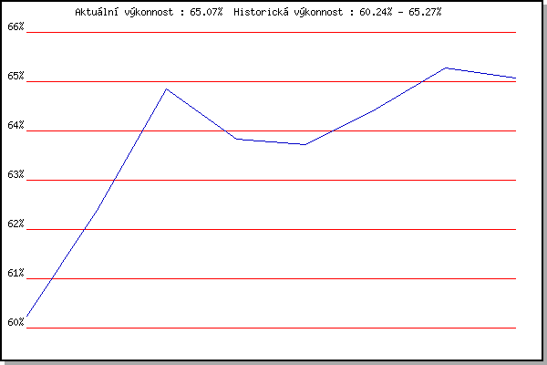 Závod| Body | Výkonnost | Změna | 17.2.2018 | Modrice | 60.24% | 60.24% | | 9.3.2019 | Modrice | 63.30% | 62.38% | +2.14% | 7.4.2019 | Brnenska prehrada | 67.12% | 64.85% | +2.47% | 30.11.2019 | Okrouhla | 61.82% | 63.84% | -1.01% | 14.12.2019 | Vranovsky zleb | 63.49% | 63.73% | -0.11% | 18.1.2020 | Radostice | 65.81% | 64.44% | +0.71% | 25.1.2020 | Rajecko | 67.01% | 65.27% | +0.83% | 7.3.2020 | Modrice | 64.43% | 65.07% | -0.20% | | |