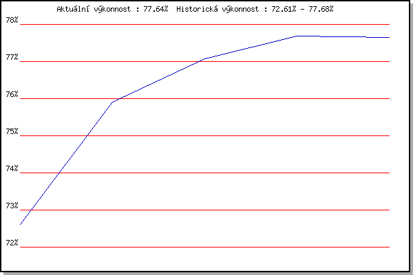 Závod| Body | Výkonnost | Změna | 25.3.2018 | Brnenska prehrada | 72.61% | 72.61% | | 9.3.2019 | Modrice | 77.32% | 75.91% | +3.30% | 16.3.2019 | Myslivna | 78.18% | 77.08% | +1.17% | 7.4.2019 | Brnenska prehrada | 78.50% | 77.68% | +0.60% | 7.3.2020 | Modrice | 77.55% | 77.64% | -0.04% | | |