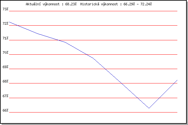 Závod| Body | Výkonnost | Změna | 26.12.2007 | Syrovice | 72.24% | 72.24% | | 26.12.2008 | Syrovice | 70.43% | 71.44% | -0.80% | 26.12.2010 | Syrovice | 69.69% | 70.84% | -0.60% | 26.12.2012 | Syrovice | 65.44% | 69.74% | -1.10% | 26.12.2013 | Syrovice | 61.50% | 68.04% | -1.70% | 26.12.2014 | Syrovice | 60.93% | 66.29% | -1.75% | 26.12.2015 | Syrovice | 72.23% | 68.23% | +1.94% | | |