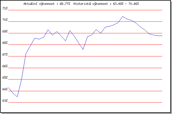 ZávodBodyVýkonnostZměna| 26.12.2007 | Syrovice | 64.29% | 64.29% | | | 5.1.2008 | Krenovice | 63.17% | 63.80% | -0.49% | | 19.1.2008 | Radostice | 62.96% | 63.49% | -0.31% | | 2.2.2008 | Kanice | 67.09% | 65.04% | +1.55% | | 16.2.2008 | Rajecko | 70.83% | 67.25% | +2.21% | | 15.3.2008 | Myslivna | 69.26% | 67.94% | +0.69% | | 29.3.2008 | Cernohorsky soudek | 69.99% | 68.59% | +0.65% | | 22.11.2008 | 17.listopadu | 68.17% | 68.49% | -0.10% | | 6.12.2008 | Jehnice | 69.05% | 68.65% | +0.16% | | 26.12.2008 | Syrovice | 70.96% | 69.30% | +0.65% | | 24.1.2009 | Radostice | 66.92% | 68.83% | -0.47% | | 7.2.2009 | Kanice | 69.97% | 69.14% | +0.31% | | 21.2.2009 | Rajecko | 66.73% | 68.75% | -0.39% | | 7.3.2009 | Modrice | 66.53% | 68.33% | -0.42% | | 4.4.2009 | Cernohorsky soudek | 71.68% | 69.22% | +0.89% | | 21.11.2009 | 17.listopadu | 65.72% | 68.74% | -0.48% | | 5.12.2009 | Okrouhla | 65.72% | 68.13% | -0.61% | | 26.12.2009 | Syrovice | 52.73% | 67.59% | -0.54% | | 17.11.2010 | 17.listopadu | 71.86% | 68.70% | +1.11% | | 4.12.2010 | Okrouhla | 69.33% | 68.86% | +0.16% | | 26.12.2010 | Syrovice | 70.65% | 69.32% | +0.46% | | 8.1.2011 | Kurim | 67.73% | 69.00% | -0.32% | | 22.1.2011 | Radostice | 70.98% | 69.51% | +0.51% | | 5.2.2011 | Kanice | 69.82% | 69.58% | +0.07% | | 19.2.2011 | Rajecko | 70.11% | 69.71% | +0.13% | | 5.3.2011 | Modrice | 70.46% | 69.90% | +0.19% | | 26.3.2011 | Myslivna | 72.09% | 70.46% | +0.56% | | 2.4.2011 | Cernohorsky soudek | 69.36% | 70.24% | -0.22% | | 17.11.2011 | Jehnice | 69.56% | 70.10% | -0.14% | | 3.12.2011 | Okrouhla | 69.03% | 69.89% | -0.21% | | 26.12.2011 | Syrovice | 67.50% | 69.57% | -0.32% | | 7.1.2012 | Kurim | 68.16% | 69.29% | -0.28% | | 21.1.2012 | Radostice | 66.65% | 68.96% | -0.33% | | 31.3.2012 | Cernohorsky soudek | 68.37% | 68.85% | -0.11% | | 17.11.2012 | Jehnice | 68.52% | 68.78% | -0.07% | | 17.11.2013 | Jehnice | 68.72% | 68.77% | -0.01% | | | | |