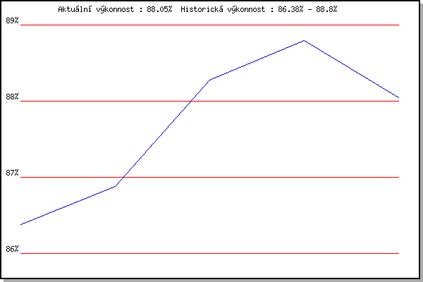 Závod| Body | Výkonnost | Změna | 5.1.2008 | Krenovice | 86.37% | 86.38% | | 2.2.2008 | Kanice | 87.10% | 86.88% | +0.50% | 26.12.2011 | Syrovice | 89.58% | 88.28% | +1.40% | 21.1.2012 | Radostice | 89.50% | 88.80% | +0.52% | 24.3.2013 | Myslivna | 84.90% | 88.05% | -0.75% | | |