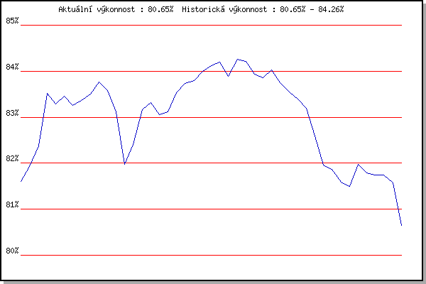 ZávodBodyVýkonnostZměna| 5.1.2008 | Krenovice | 81.60% | 81.60% | | | 19.1.2008 | Radostice | 82.07% | 81.93% | +0.33% | | 2.2.2008 | Kanice | 82.80% | 82.38% | +0.45% | | 6.12.2008 | Jehnice | 85.05% | 83.52% | +1.14% | | 24.1.2009 | Radostice | 82.71% | 83.28% | -0.24% | | 7.2.2009 | Kanice | 83.78% | 83.45% | +0.17% | | 21.2.2009 | Rajecko | 82.72% | 83.26% | -0.19% | | 7.3.2009 | Modrice | 83.60% | 83.37% | +0.11% | | 4.4.2009 | Cernohorsky soudek | 83.83% | 83.50% | +0.13% | | 5.12.2009 | Okrouhla | 84.48% | 83.77% | +0.27% | | 9.1.2010 | Kurim | 81.68% | 83.58% | -0.19% | | 23.1.2010 | Radostice | 78.02% | 83.11% | -0.47% | | 6.2.2010 | Kanice | 71.80% | 81.98% | -1.13% | | 20.2.2010 | Rajecko | 83.61% | 82.41% | +0.43% | | 6.3.2010 | Modrice | 85.33% | 83.17% | +0.76% | | 3.4.2010 | Cernohorsky soudek | 83.68% | 83.31% | +0.14% | | 8.1.2011 | Kurim | 82.03% | 83.05% | -0.26% | | 5.2.2011 | Kanice | 83.32% | 83.11% | +0.06% | | 19.2.2011 | Rajecko | 84.77% | 83.53% | +0.42% | | 5.3.2011 | Modrice | 84.32% | 83.73% | +0.20% | | 26.3.2011 | Myslivna | 84.02% | 83.80% | +0.07% | | 2.4.2011 | Cernohorsky soudek | 84.57% | 83.99% | +0.19% | | 3.12.2011 | Okrouhla | 84.52% | 84.12% | +0.13% | | 7.1.2012 | Kurim | 84.38% | 84.19% | +0.07% | | 4.2.2012 | Kanice | 82.21% | 83.89% | -0.30% | | 18.2.2012 | Rajecko | 85.35% | 84.26% | +0.37% | | 2.2.2013 | Rajecko | 84.00% | 84.21% | -0.05% | | 2.3.2013 | Vranovsky zleb | 82.02% | 83.93% | -0.28% | | 9.3.2013 | Modrice | 83.56% | 83.86% | -0.07% | | 17.11.2013 | Jehnice | 84.51% | 84.02% | +0.16% | | 8.2.2014 | Rajecko | 82.27% | 83.75% | -0.27% | | 8.3.2014 | Modrice | 82.75% | 83.55% | -0.20% | | 5.4.2014 | Soudek Vinice | 82.75% | 83.39% | -0.16% | | 7.2.2015 | Rajecko | 79.17% | 83.20% | -0.19% | | 7.3.2015 | Modrice | 80.09% | 82.59% | -0.61% | | 14.3.2015 | Myslivna | 79.40% | 81.96% | -0.63% | | 29.3.2015 | Brnenska prehrada | 81.49% | 81.87% | -0.09% | | 6.2.2016 | Rajecko | 80.48% | 81.59% | -0.28% | | 19.3.2016 | Myslivna | 81.12% | 81.50% | -0.09% | | 3.4.2016 | Brnenska prehrada | 83.38% | 81.97% | +0.47% | | 11.2.2017 | Rajecko | 81.04% | 81.79% | -0.18% | | 4.3.2017 | Modrice | 81.56% | 81.74% | -0.05% | | 25.3.2017 | Myslivna | 81.74% | 81.74% | 0.00% | | 27.1.2018 | Rajecko | 76.78% | 81.58% | -0.16% | | 25.1.2020 | Rajecko | 75.31% | 80.65% | -0.93% | | | | |