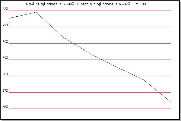 Závod| Body | Výkonnost | Změna | 5.1.2008 | Krenovice | 71.54% | 71.54% | | 15.3.2008 | Myslivna | 72.08% | 71.91% | +0.37% | 6.12.2008 | Jehnice | 66.15% | 70.38% | -1.53% | 24.1.2009 | Radostice | 67.37% | 69.38% | -1.00% | 21.3.2009 | Myslivna | 66.57% | 68.55% | -0.83% | 5.12.2009 | Okrouhla | 63.81% | 67.78% | -0.77% | 15.3.2014 | Myslivna | 57.75% | 66.43% | -1.35% | | |