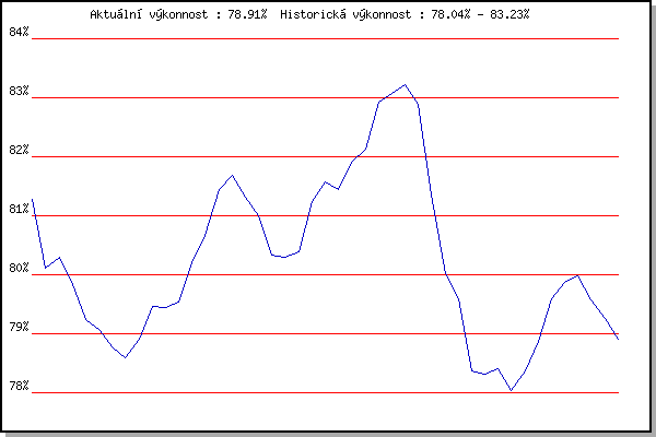 ZávodBodyVýkonnostZměna| 17.11.2007 | 17.listopadu | 81.28% | 81.28% | | | 1.12.2007 | Jehnice | 78.65% | 80.12% | -1.16% | | 26.12.2007 | Syrovice | 80.45% | 80.29% | +0.17% | | 5.1.2008 | Krenovice | 78.62% | 79.83% | -0.46% | | 2.2.2008 | Kanice | 76.69% | 79.24% | -0.59% | | 1.3.2008 | Modrice | 78.60% | 79.07% | -0.17% | | 15.3.2008 | Myslivna | 77.94% | 78.78% | -0.29% | | 22.11.2008 | 17.listopadu | 77.96% | 78.59% | -0.19% | | 6.12.2008 | Jehnice | 79.66% | 78.90% | +0.31% | | 26.12.2008 | Syrovice | 80.92% | 79.47% | +0.57% | | 24.1.2009 | Radostice | 79.35% | 79.44% | -0.03% | | 7.2.2009 | Kanice | 79.79% | 79.54% | +0.10% | | 7.3.2009 | Modrice | 82.03% | 80.21% | +0.67% | | 21.3.2009 | Myslivna | 81.97% | 80.67% | +0.46% | | 21.11.2009 | 17.listopadu | 83.62% | 81.44% | +0.77% | | 5.12.2009 | Okrouhla | 82.42% | 81.69% | +0.25% | | 26.12.2009 | Syrovice | 79.82% | 81.31% | -0.38% | | 23.1.2010 | Radostice | 76.96% | 81.00% | -0.31% | | 6.2.2010 | Kanice | 77.64% | 80.33% | -0.67% | | 6.3.2010 | Modrice | 80.11% | 80.29% | -0.04% | | 21.3.2010 | Myslivna | 80.67% | 80.38% | +0.09% | | 17.11.2010 | 17.listopadu | 83.73% | 81.24% | +0.86% | | 4.12.2010 | Okrouhla | 82.56% | 81.57% | +0.33% | | 8.1.2011 | Kurim | 80.90% | 81.44% | -0.13% | | 22.1.2011 | Radostice | 83.30% | 81.91% | +0.47% | | 5.2.2011 | Kanice | 82.78% | 82.13% | +0.22% | | 19.2.2011 | Rajecko | 85.23% | 82.92% | +0.79% | | 5.3.2011 | Modrice | 83.55% | 83.07% | +0.15% | | 26.3.2011 | Myslivna | 83.71% | 83.23% | +0.16% | | 3.12.2011 | Okrouhla | 70.69% | 82.89% | -0.34% | | 26.12.2011 | Syrovice | 74.93% | 81.36% | -1.53% | | 7.1.2012 | Kurim | 74.47% | 80.02% | -1.34% | | 21.1.2012 | Radostice | 77.81% | 79.59% | -0.43% | | 11.3.2012 | Myslivna | 68.61% | 78.37% | -1.22% | | 17.11.2012 | Jehnice | 78.11% | 78.32% | -0.05% | | 19.1.2013 | Radostice | 78.67% | 78.41% | +0.09% | | 8.2.2014 | Rajecko | 76.55% | 78.04% | -0.37% | | 15.3.2014 | Myslivna | 79.41% | 78.38% | +0.34% | | 17.11.2014 | Jehnice | 80.36% | 78.88% | +0.50% | | 26.12.2014 | Syrovice | 81.69% | 79.59% | +0.71% | | 17.1.2015 | Radostice | 80.71% | 79.87% | +0.28% | | 17.11.2015 | Jehnice | 80.32% | 79.99% | +0.12% | | 12.12.2015 | Vranovsky zleb | 77.94% | 79.58% | -0.41% | | 6.2.2016 | Rajecko | 77.96% | 79.26% | -0.32% | | 17.11.2016 | Jehnice | 75.41% | 78.91% | -0.35% | | | | |