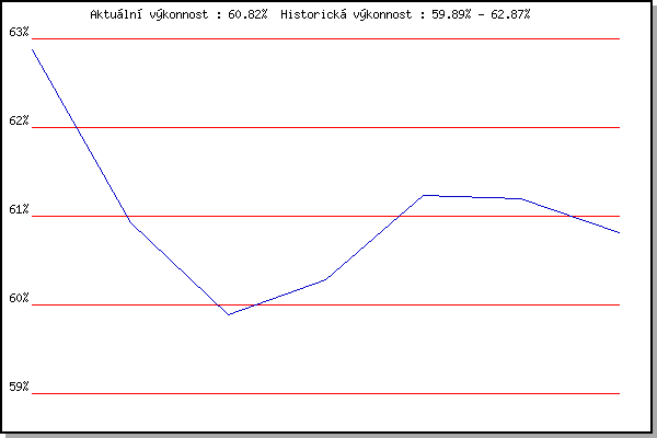 Závod| Body | Výkonnost | Změna | 26.12.2008 | Syrovice | 62.87% | 62.87% | | 3.3.2012 | Modrice | 58.42% | 60.93% | -1.94% | 7.3.2015 | Modrice | 58.33% | 59.89% | -1.04% | 26.12.2015 | Syrovice | 60.81% | 60.28% | +0.39% | 12.3.2016 | Modrice | 62.82% | 61.24% | +0.96% | 26.12.2016 | Syrovice | 61.09% | 61.20% | -0.04% | 4.3.2017 | Modrice | 59.46% | 60.82% | -0.38% | | |