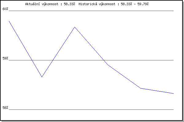 Závod| Body | Výkonnost | Změna | 21.11.2009 | 17.listopadu | 59.79% | 59.79% | | 5.12.2009 | Okrouhla | 57.21% | 58.66% | -1.13% | 26.12.2009 | Syrovice | 60.60% | 59.67% | +1.01% | 23.1.2010 | Radostice | 57.02% | 58.91% | -0.76% | 6.2.2010 | Kanice | 57.30% | 58.43% | -0.48% | 6.3.2010 | Modrice | 58.05% | 58.33% | -0.10% | | |