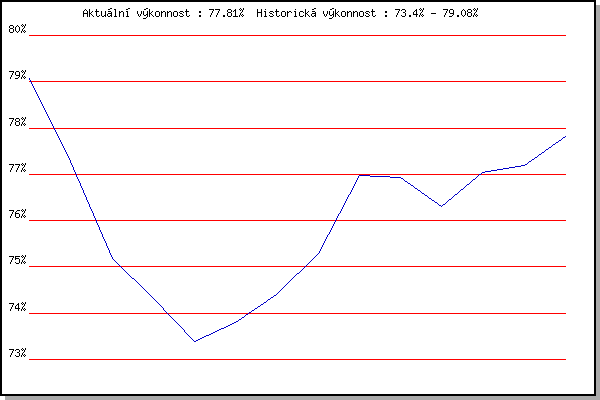 ZávodBodyVýkonnostZměna| 5.12.2009 | Okrouhla | 79.08% | 79.08% | | | 3.12.2011 | Okrouhla | 74.94% | 77.27% | -1.81% | | 4.1.2014 | Kurim | 70.40% | 75.18% | -2.09% | | 8.2.2014 | Rajecko | 72.61% | 74.32% | -0.86% | | 6.12.2014 | Okrouhla | 71.20% | 73.40% | -0.92% | | 7.2.2015 | Rajecko | 74.53% | 73.79% | +0.39% | | 6.2.2016 | Rajecko | 75.68% | 74.40% | +0.61% | | 3.12.2016 | Okrouhla | 77.36% | 75.30% | +0.90% | | 11.2.2017 | Rajecko | 80.97% | 76.98% | +1.68% | | 2.12.2017 | Okrouhla | 76.75% | 76.93% | -0.05% | | 27.1.2018 | Rajecko | 73.20% | 76.31% | -0.62% | | 26.1.2019 | Rajecko | 79.03% | 77.05% | +0.74% | | 30.11.2019 | Okrouhla | 77.59% | 77.19% | +0.14% | | 25.1.2020 | Rajecko | 79.52% | 77.81% | +0.62% | | | | |