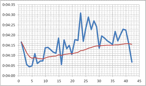 Čas: 3:00:38 (reálný čas 3:00:37; za OR o 6:15, 5.nejrychlejší čas vůbec)