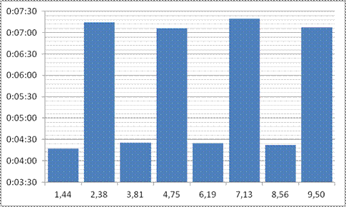 Časy kol (včetně ekvivalentu zkrácených): 7:21 7:23 7:21 7:06 7:13 7:15
