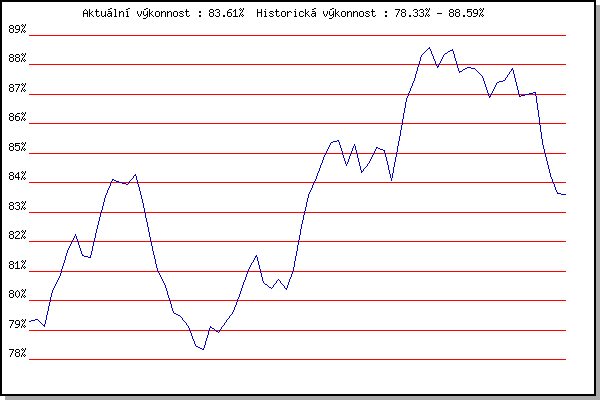 ZávodBodyVýkonnostZměna| 11.05.2011 | Pisárky Anthropos, 6 km | 79.29% | 79.29% | | | 18.05.2011 | Palackého vrch, 7.1 km | 79.40% | 79.37% | +0.08% | | 25.05.2011 | Obřany, 8.8 km | 78.50% | 79.13% | -0.24% | | 08.06.2011 | Veselka, Popůvky Vintrovna, 7.9 km | 81.82% | 80.33% | +1.20% | | 15.06.2011 | Pisárky Anthropos, 6 km | 81.25% | 80.80% | +0.47% | | 23.06.2011 | Palackého vrch – Běh Olympijského dne | 83.06% | 81.67% | +0.87% | | 13.07.2011 | Popůvky, 7.9 km | 82.97% | 82.23% | +0.56% | | 03.08.2011 | Palackého vrch, 7.1 km | 79.18% | 81.52% | -0.71% | | 10.08.2011 | Obřany, 8.8 km | 80.92% | 81.48% | -0.04% | | 17.08.2011 | AC Moravská Slávia, 10km atletický | 84.65% | 82.50% | +1.02% | | 24.08.2011 | Líšeň Mariánské údolí, 11.1 km | 85.68% | 83.55% | +1.05% | | 31.08.2011 | Popůvky, 7.9 km | 85.12% | 84.12% | +0.57% | | 07.09.2011 | Pisárky Anthropos, 6 km | 83.10% | 84.02% | -0.10% | | 21.09.2011 | AC Moravská Slávia Brno, 1hod atlet | 83.19% | 83.94% | -0.08% | | 28.09.2011 | Blažovice – Svatováclavský běh , 11 k | 84.92% | 84.27% | +0.33% | | 09.05.2012 | Pisárky Anthropos, 6 km | 61.03% | 83.41% | -0.86% | | 16.05.2012 | Palackého vrch, 7.1 km | 76.32% | 82.09% | -1.32% | | 30.05.2012 | Líšeň Mariánské údolí, 11 km | 76.61% | 81.01% | -1.08% | | 06.06.2012 | Popůvky, 7.9 km | 77.96% | 80.48% | -0.53% | | 20.06.2012 | Palackého vrch – Běh Olympijského dne | 75.69% | 79.59% | -0.89% | | 27.06.2012 | Obřany, 8.8 km | 78.26% | 79.45% | -0.14% | | 18.07.2012 | Atletický stadión Pod Palackého vrche | 77.40% | 79.11% | -0.34% | | 01.08.2012 | Palackého vrch, 7.1 km | 75.95% | 78.49% | -0.62% | | 08.08.2012 | Obřany, 8.8 km | 77.36% | 78.33% | -0.16% | | 22.08.2012 | Líšeň Mariánské údolí, 11 km | 81.02% | 79.13% | +0.80% | | 29.08.2012 | Pisárky Anthropos, 6 km | 77.64% | 78.91% | -0.22% | | 05.09.2012 | Popůvky, 7.9 km | 79.86% | 79.25% | +0.34% | | 12.09.2012 | Líšeň Mariánské údolí, 11 km | 80.38% | 79.63% | +0.38% | | 19.09.2012 | Atletický stadión Pod Palackého vrche | 81.71% | 80.27% | +0.64% | | 28.09.2012 | Blažovice – Svatováclavský běh, 11 km | 82.78% | 81.04% | +0.77% | | 05.06.2013 | Líšeň, 11 km | 82.34% | 81.53% | +0.49% | | 03.07.2013 | Obřany, 8.8 km | 74.03% | 80.62% | -0.91% | | 10.07.2013 | Popůvky, 7.3 km | 78.84% | 80.42% | -0.20% | | 17.07.2013 | Atletický stadión Pod Palackého vrche | 81.01% | 80.72% | +0.30% | | 16.09.2015 | Pisárky Anthropos, 6 km | 78.80% | 80.39% | -0.33% | | 04.05.2016 | Líšeň, 11 km | 82.65% | 81.04% | +0.65% | | 11.05.2016 | Popůvky, 7.9 km | 86.34% | 82.51% | +1.47% | | 18.05.2016 | Palackého vrch, 7.1 km | 85.94% | 83.56% | +1.05% | | 25.05.2016 | Obřany, 8.8 km | 85.13% | 84.18% | +0.62% | | 01.06.2016 | Líšeň, 11 km | 85.84% | 84.82% | +0.64% | | 08.06.2016 | Popůvky, 7.9 km | 86.24% | 85.36% | +0.54% | | 15.06.2016 | Pisárky Anthropos, 6 km | 84.96% | 85.42% | +0.06% | | 13.07.2016 | Atletický stadión Pod Palackého vrche | 80.95% | 84.59% | -0.83% | | 20.07.2016 | Pisárky Anthropos, 6 km | 86.65% | 85.29% | +0.70% | | 27.07.2016 | Palackého vrch, 7.1 km | 79.86% | 84.36% | -0.93% | | 03.08.2016 | Obřany, 8.8 km | 84.84% | 84.69% | +0.33% | | 24.08.2016 | Popůvky, 7.9 km | 85.93% | 85.20% | +0.51% | | 31.08.2016 | Atletický stadión Pod Palackého vrche | 83.86% | 85.08% | -0.12% | | 07.09.2016 | Pisárky Anthropos, 6 km | 74.18% | 84.07% | -1.01% | | 26.04.2017 | Pisárky Anthropos, 6 km | 88.76% | 85.51% | +1.44% | | 17.05.2017 | Palackého vrch, 7.1 km | 89.70% | 86.84% | +1.33% | | 24.05.2017 | Obřany, 8.8 km | 88.38% | 87.49% | +0.65% | | 31.05.2017 | Líšeň, 11 km | 90.04% | 88.31% | +0.82% | | 07.06.2017 | Pisárky Anthropos, 6 km | 88.64% | 88.59% | +0.28% | | 14.06.2017 | Popůvky, 7.9 km | 85.09% | 87.90% | -0.69% | | 21.06.2017 | Palackého vrch, 7.1 km | 89.18% | 88.36% | +0.46% | | 28.06.2017 | Obřany, 8.8 km | 88.37% | 88.53% | +0.17% | | 26.07.2017 | Palackého vrch, 7.1 km | 83.83% | 87.73% | -0.80% | | 02.08.2017 | Líšeň, 11 km | 87.67% | 87.91% | +0.18% | | 09.08.2017 | Hotel Myslivna, 7 km | 87.19% | 87.89% | -0.02% | | 16.08.2017 | Obřany, 8.8 km | 86.22% | 87.62% | -0.27% | | 23.08.2017 | Popůvky, 7.9 km | 82.29% | 86.90% | -0.72% | | 30.08.2017 | Atletický stadión Pod Palackého vrche | 88.17% | 87.40% | +0.50% | | 13.09.2017 | Pisárky Anthropos, 6 km | 86.95% | 87.46% | +0.06% | | 25.04.2018 | Atletický stadión Pod Palackého vrche | 88.68% | 87.87% | +0.41% | | 02.05.2018 | Hotel Myslivna, 7 km | 74.29% | 86.93% | -0.94% | | 09.05.2018 | Popůvky, 7.9 km | 86.12% | 86.99% | +0.06% | | 16.05.2018 | Palackého vrch, 7.1 km | 86.46% | 87.06% | +0.07% | | 06.06.2018 | Pisárky Anthropos, 6 km | 76.01% | 85.38% | -1.68% | | 20.06.2018 | Palackého vrch, 7.1 km | 78.89% | 84.26% | -1.12% | | 27.06.2018 | Popůvky, 7.9 km | 80.15% | 83.63% | -0.63% | | 29.05.2019 | Líšeň, 11 km | 82.62% | 83.61% | -0.02% | | | | |