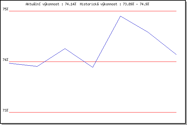 Závod| Body | Výkonnost | Změna | 23.06.2021 | Obřany | 73.97% | 73.97% | | 30.06.2021 | Líšeň | 73.84% | 73.91% | -0.06% | 07.07.2021 | Pisárky | 74.57% | 74.26% | +0.35% | 28.07.2021 | Palackého vrch | 72.48% | 73.89% | -0.37% | 04.08.2021 | Pisárky | 76.31% | 74.90% | +1.01% | 25.08.2021 | Líšeň | 73.58% | 74.58% | -0.32% | 01.09.2021 | Obřany | 72.71% | 74.14% | -0.44% | | |