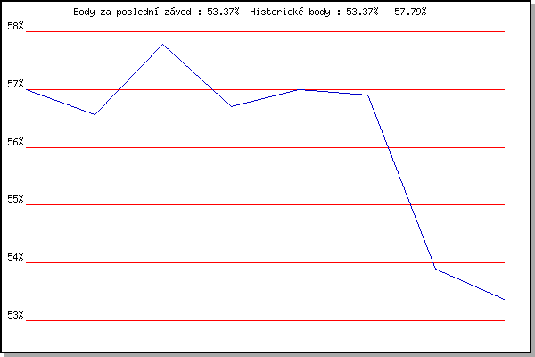 | 28.09.2010 | Blažovice Svatováclavský běh, 9.4 km | 57.79% | 57.33% | +0.53% |