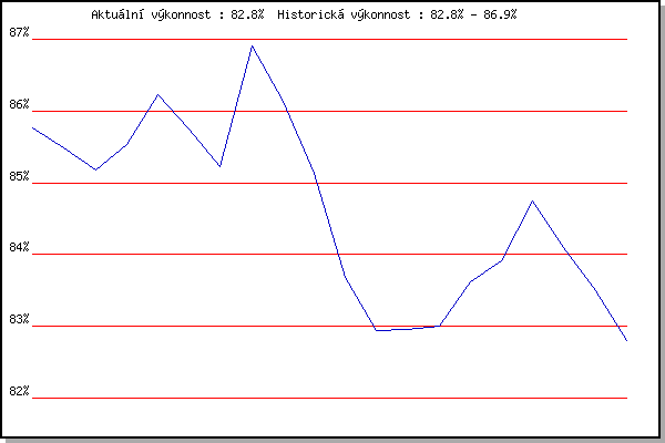 ZávodBodyVýkonnostZměna| 31.05.2006 | Palackého vrch vodárna, 9 km | 85.75% | 85.76% | | | 07.06.2006 | Líšeň Mariánské údolí, 11.1 km | 85.15% | 85.49% | -0.27% | | 14.06.2006 | Veselka, Popůvky Vintrovna, 7.9 km | 84.48% | 85.18% | -0.31% | | 22.06.2006 | Palackého vrch dráha, 5 km | 85.87% | 85.53% | +0.35% | | 28.06.2006 | Pisárky Anthropos, 6.6 km | 87.22% | 86.23% | +0.70% | | 25.07.2006 | Veselka Popůvky Vintrovna, 7.9 km | 84.30% | 85.75% | -0.48% | | 09.08.2006 | Palackého vrch, 9 km | 81.71% | 85.22% | -0.53% | | 20.06.2007 | Palackého vrch Běh Olympijského dne | 90.13% | 86.90% | +1.68% | | 18.06.2008 | Obřany, 8.8 km | 83.49% | 86.13% | -0.77% | | 15.06.2011 | Pisárky Anthropos, 6 km | 77.63% | 85.14% | -0.99% | | 29.06.2011 | Obřany, 8.8 km | 78.24% | 83.69% | -1.45% | | 27.07.2011 | Pisárky Anthropos, 6 km | 79.76% | 82.94% | -0.75% | | 03.08.2011 | Palackého vrch, 7.1 km | 82.13% | 82.96% | +0.02% | | 10.08.2011 | Obřany, 8.8 km | 82.25% | 83.01% | +0.05% | | 17.08.2011 | AC Moravská Slávia, 10km atletický | 84.73% | 83.62% | +0.61% | | 24.08.2011 | Líšeň Mariánské údolí, 11.1 km | 84.03% | 83.92% | +0.30% | | 31.08.2011 | Popůvky, 7.9 km | 86.67% | 84.74% | +0.82% | | 14.05.2014 | Pisárky Anthropos, 6 km | 81.48% | 84.10% | -0.64% | | 18.06.2014 | Pisárky Anthropos, 6 km | 80.87% | 83.50% | -0.60% | | 02.07.2014 | Obřany, 8.8 km | 78.84% | 82.80% | -0.70% | | | | |