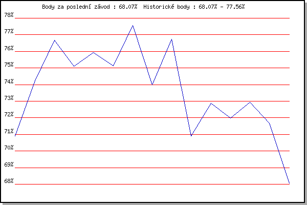 | 25.07.2007 | Pisárky Anthropos, 6.6 km | 73.98% | 75.80% | -0.46% |