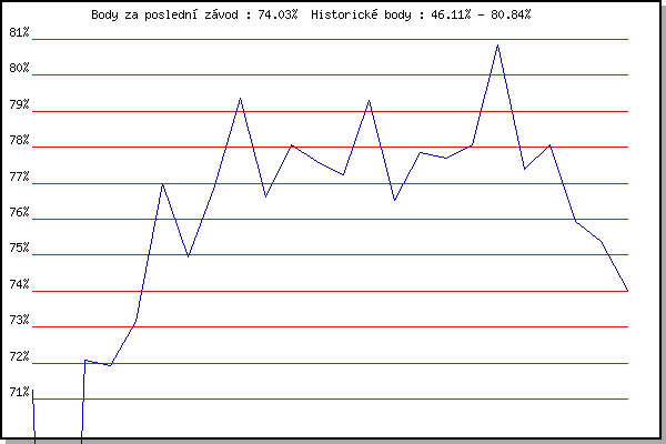 | 18.08.2010 | Moravská Slavia dráha, 10 km | 76.63% | 76.89% | +0.20% |