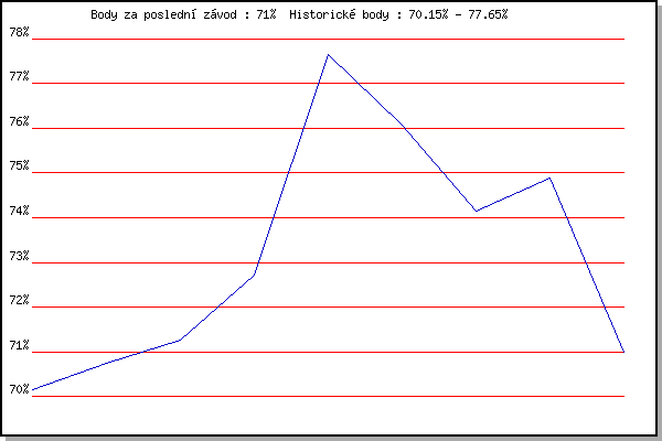 | 28.09.2010 | Blažovice Svatováclavský běh, 9.4 km | 72.72% | 71.76% | +0.79% |