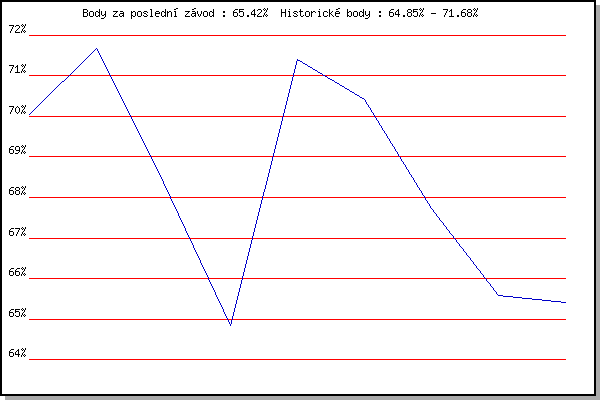 | 28.09.2010 | Blažovice Svatováclavský běh, 9.4 km | 64.85% | 69.06% | -1.23% |