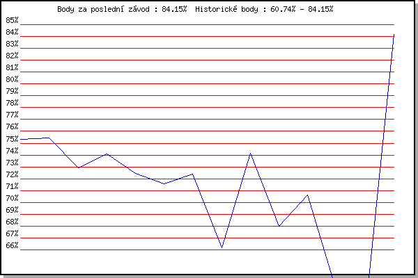 | 28.09.2014 | Blažovice – Svatováclavský běh, 11 km | 84.15% | 73.74% | +4.54% |
