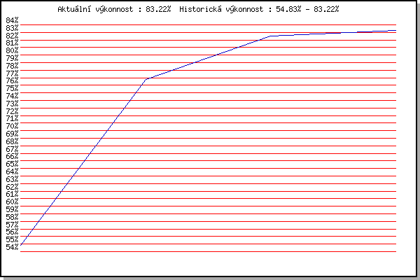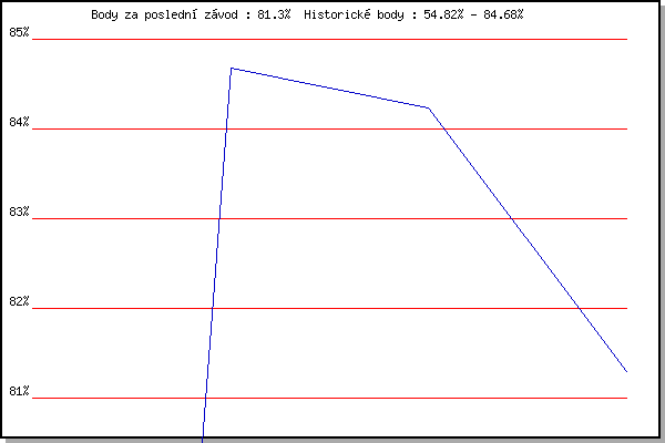 Závod| Body | Výkonnost | Změna | 28.09.2007 | Blažovice Svatováclavský běh, 11 km | 54.82% | 54.83% | | 08.05.2008 | Běh o pohár pivovaru Černá hora, 9.2 | 84.68% | 76.80% | +21.97% | 08.05.2009 | Běh o pohár pivovaru Černá hora, 9. | 84.23% | 82.50% | +5.70% | 28.05.2014 | Obřany, 8.8 km | 81.30% | 83.22% | +0.72% | | |