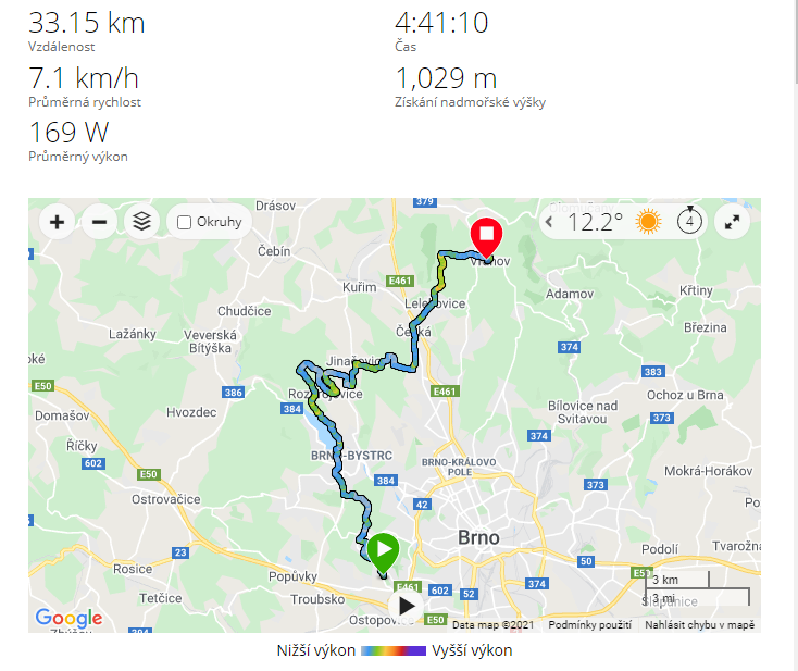 i seběhnout ze značky (a tím i trasu výrazněji prodloužit), ale nakonec jsem dorazil s menším zpožděním do Vranova v pořádku.