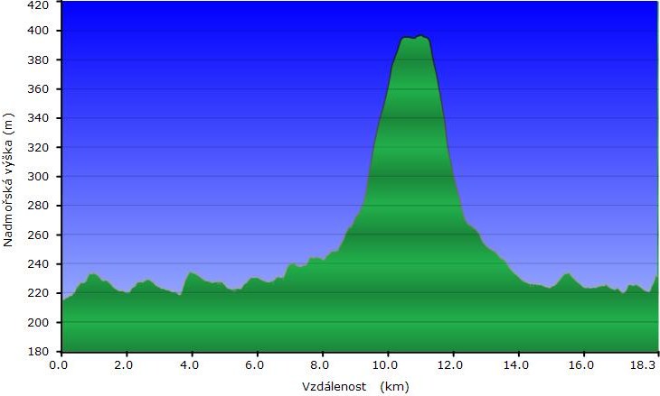 Profil: z větší části zvlněný, u Svatého kopečku kopcovitý (graf dole)